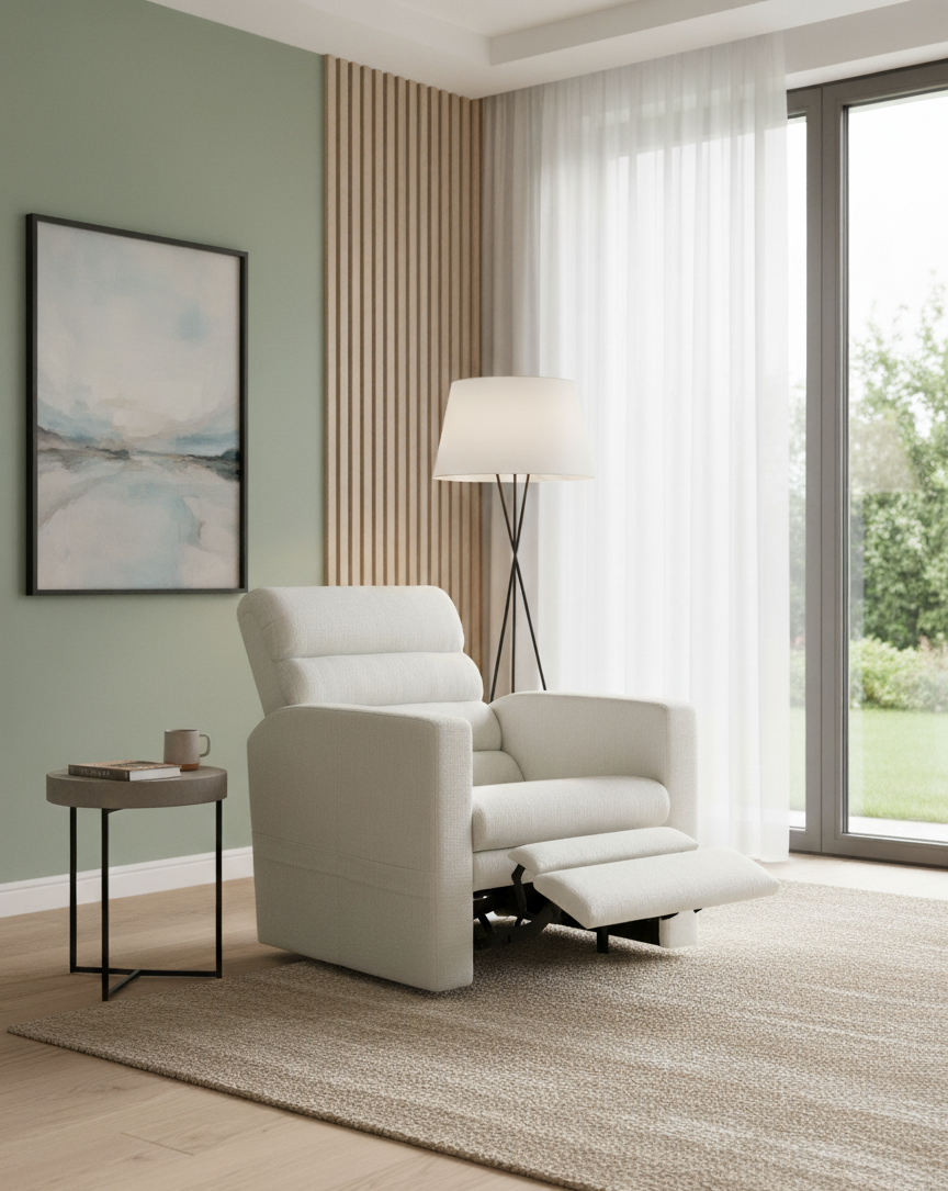 Poltrona reclinável Vibe Listrada. Poltrona super confortável e moderna.