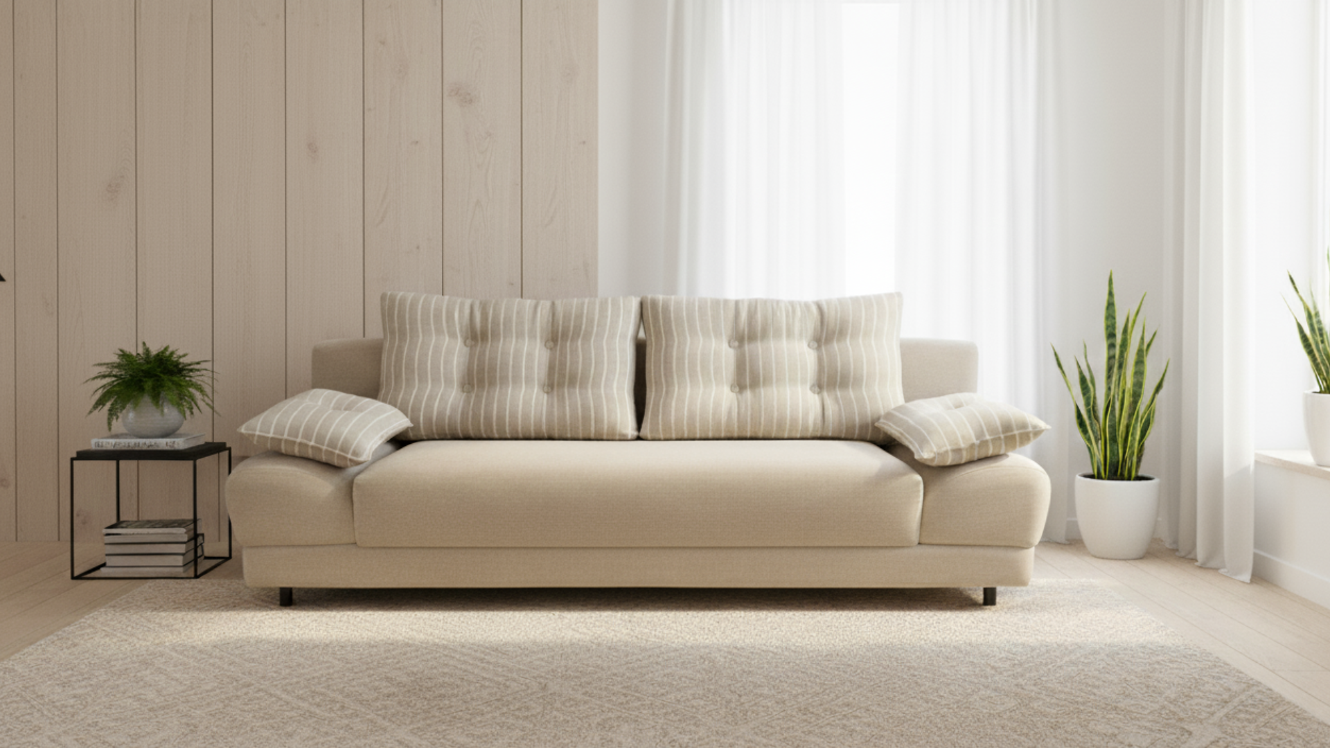Super versátil, podendo ser utilizado até como uma cama de solteiro, já que não possui braços proeminentes.